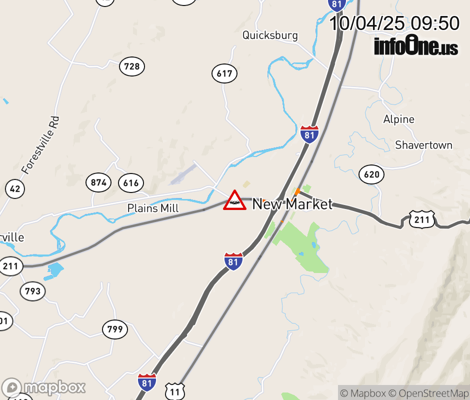 On VA-211 in the County of Shenandoah, in the vicinity of Academy Rd; Rt. 734N/S (Shenandoah County), motorists can expect delays due to a vehicle crash. All east lanes are closed. ![]() |