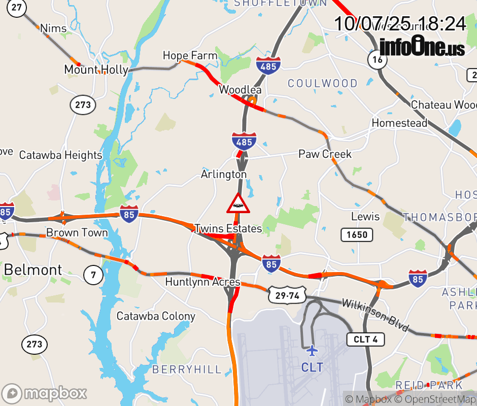 The left ramp lane is closed at Exit 48 (I-485 Inner). ![]() |