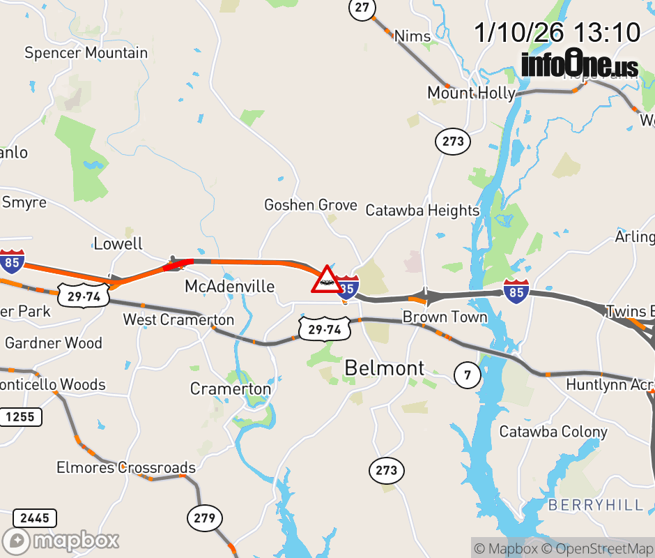 The left lane is closed before Exit 26 (NC-7) (Main St.) ![]() |