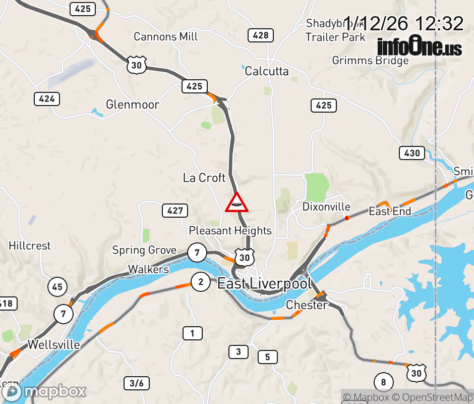 Expect lane closures on US-30 East beyond SR-170/Irish Ridge Rd, due to a crash. ![]() |