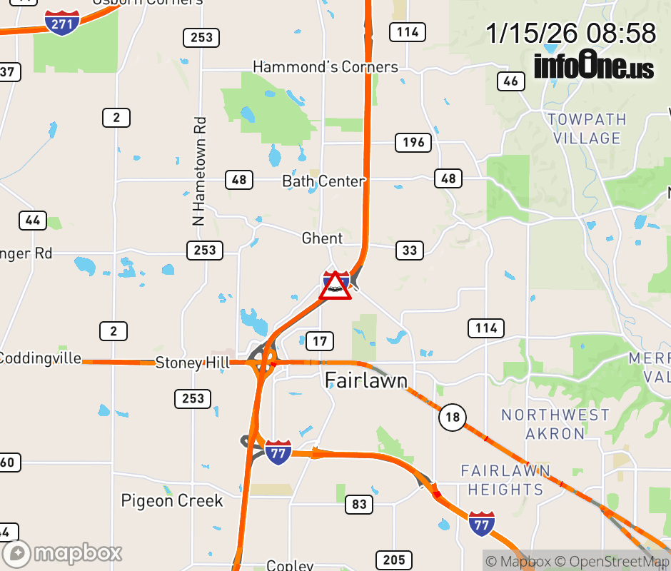 The left lane is blocked on I-77 South at Ghent Rd, due to a crash. ![]() |