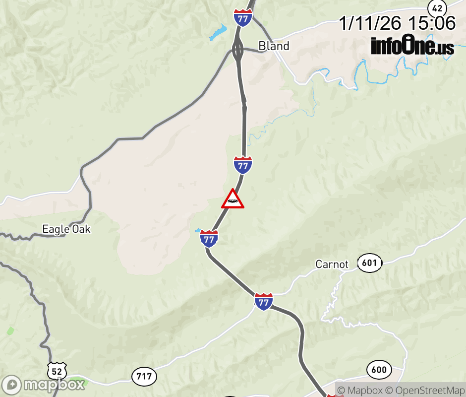 On I-77 at mile marker 50 in the County of Bland, motorists can expect delays due to a vehicle crash. The north left shoulder and left lane are closed. Updated: Sun 1/11/26 3:06 PM EST ![]() Updated: Sun 1/11/26 3:06 PM EST |