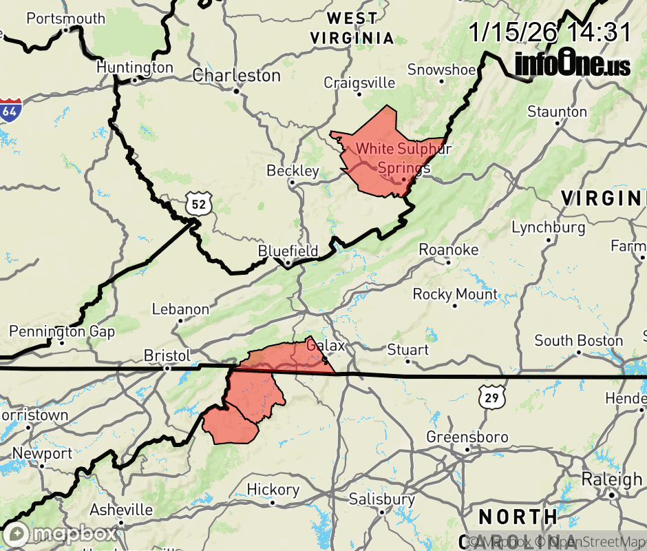 Canceled 1/15/26 8:08 PM Cold Weather Advisory issued January 15 at 2:30PM EST until January 16 at 7:00AM EST by NWS Blacksburg VA * WHAT... Very cold wind chills as low as 12 below. * WHERE... In North Carolina, Ashe and Watauga Counties. In Virginia, Grayson County. In West Virginia, Western Greenbrier County. * WHEN... Until 7 AM EST Friday. * IMPACTS... The cold wind chills as low as 10 below zero could result in hypothermia if precautions are not taken. Wind chill values can lead to hypothermia with prolonged exposure. ![]() |
