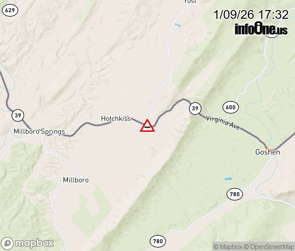 On VA-42 in the County of Bath, in the vicinity of Mill Creek Rd; Rt. 640N/S (Bath County), motorists can expect delays due to a vehicle crash. All north lanes are closed. ![]() |