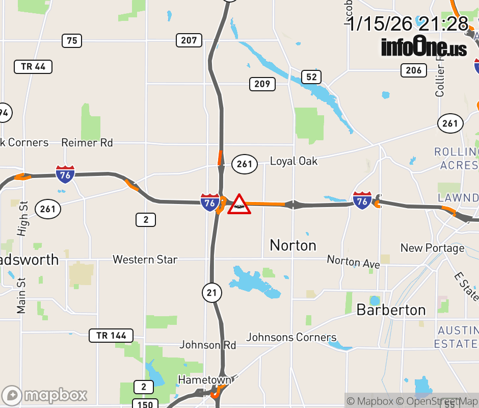 The right lane is blocked on I-76/US-224 East beyond SR-21 North, due to a crash. ![]() |