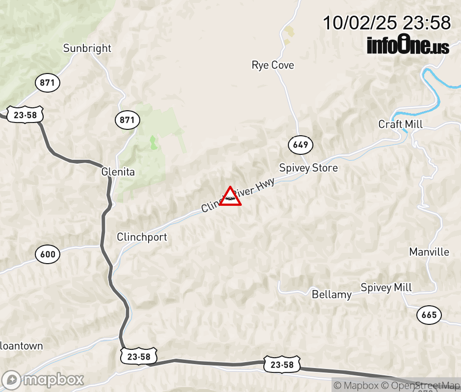 On VA-65 in the County of Scott, in the vicinity of Big Spring Rd; Rt. 648N/S (Scott County), motorists can expect delays due to a vehicle crash. All east lanes are closed. All west lanes are closed. ![]() |