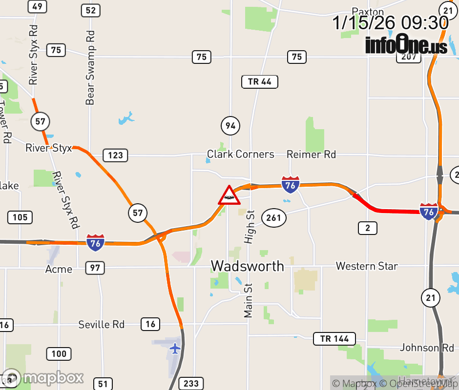 Expect lane closures on I-76/US-224 West beyond SR-94, due to a crash. ![]() |