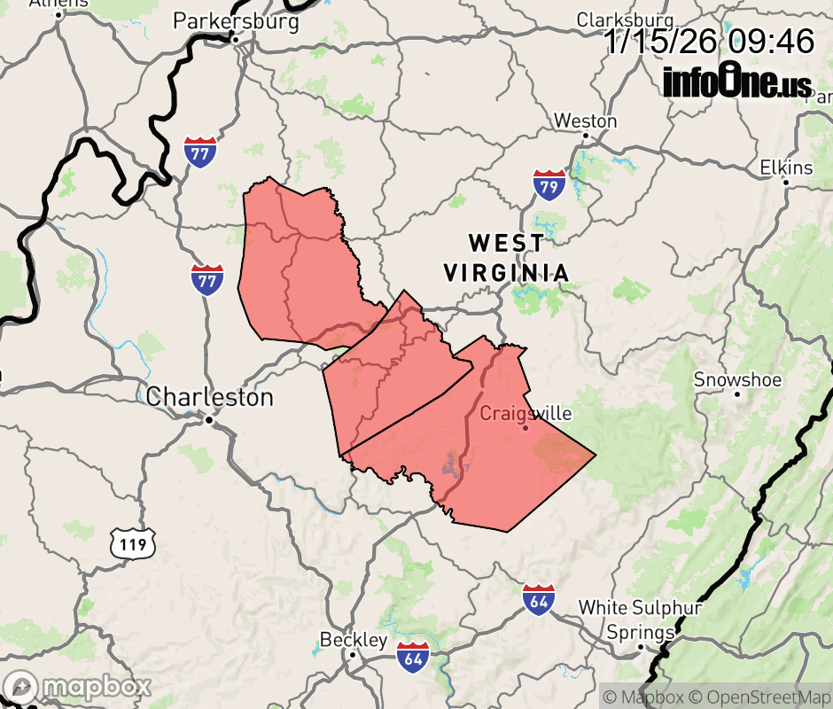 Canceled 1/15/26 12:54 PM Winter Weather Advisory issued January 15 at 9:44AM EST until January 15 at 1:00PM EST by NWS Charleston WV * WHAT... Snow. Additional snow accumulations of 1 to 2 inches. * WHERE... Clay, Roane, and Northwest Nicholas Counties. * WHEN... Until 1 PM EST this afternoon. * IMPACTS... Plan on slippery road conditions and reduced visibilities. ![]() |