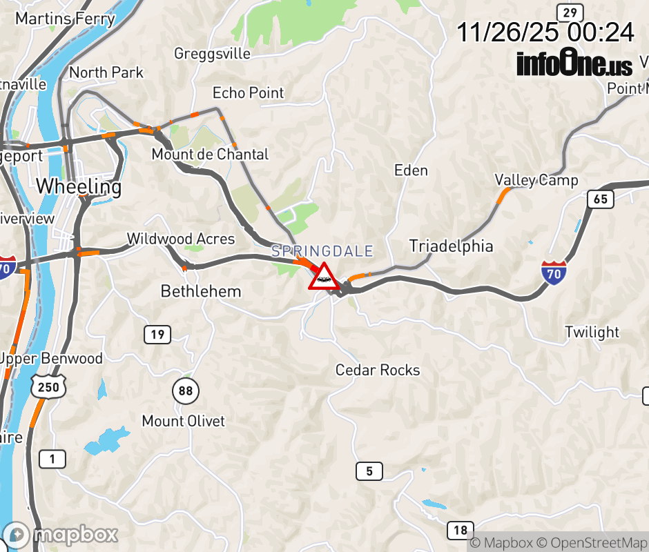 Canceled 11/26/25 12:26 AM Location: I-70 at MM 5.0, WV Accident.
