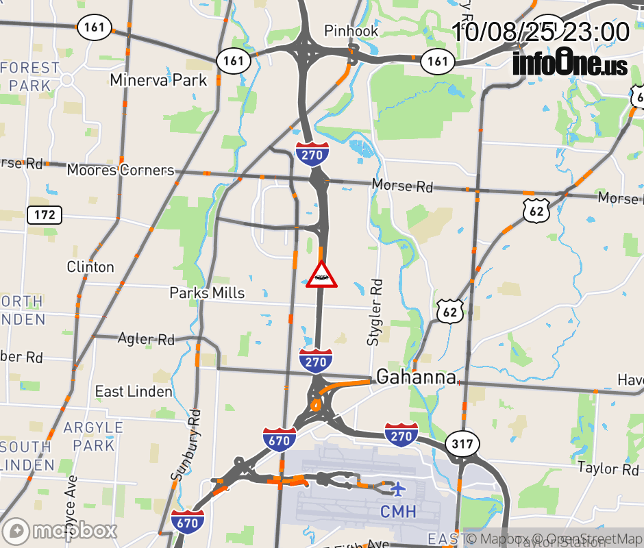 The 2 left lanes are blocked on I-270 North beyond US-62 East/Johnstown Rd, due to a crash. Updated: Wed 10/8/25 11:00 PM EDT ![]() Updated: Wed 10/8/25 11:00 PM EDT |