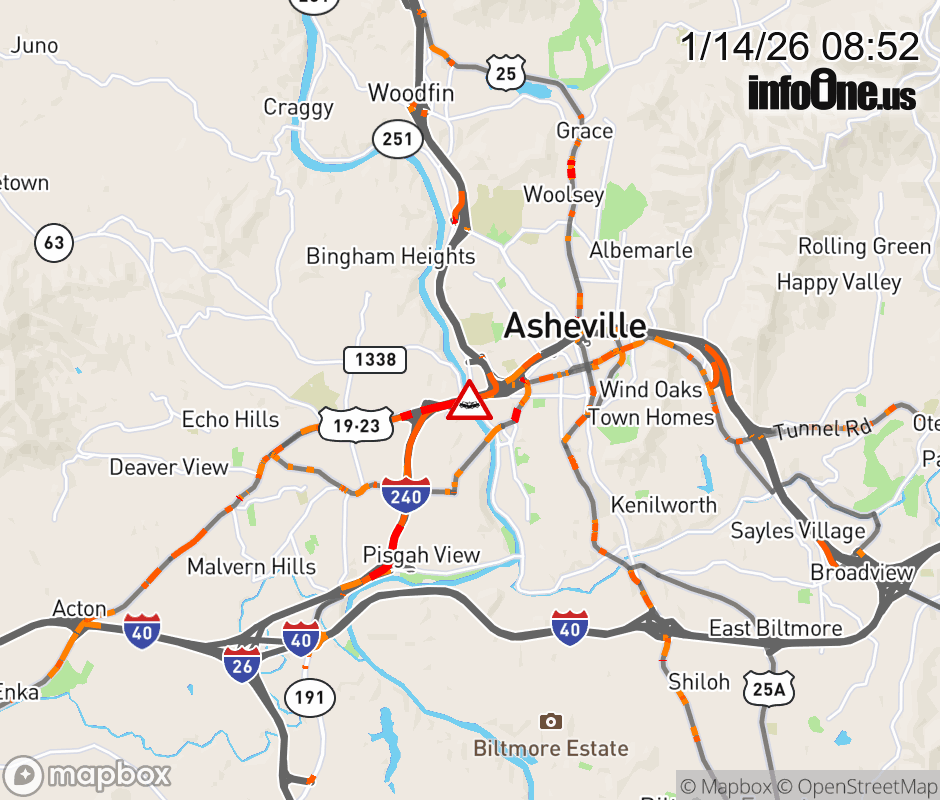 The right shoulder is closed near Exit 4A, I-26. Updated: Wed 1/14/26 8:52 AM EST ![]() Updated: Wed 1/14/26 8:52 AM EST |
