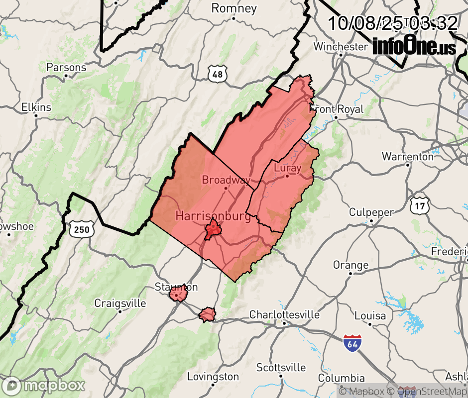 Canceled 10/8/25 9:40 AM Freeze Watch issued October 8 at 3:29AM EDT until October 10 at 9:00AM EDT by NWS Baltimore MD/Washington DC * WHAT... Sub-freezing temperatures as low as 31 possible. * WHERE... Page, Shenandoah, Augusta, and Rockingham Counties. * WHEN... From late Thursday night through Friday morning. * IMPACTS... Frost and freeze conditions could kill crops, other sensitive vegetation and possibly damage unprotected outdoor plumbing. ![]() |