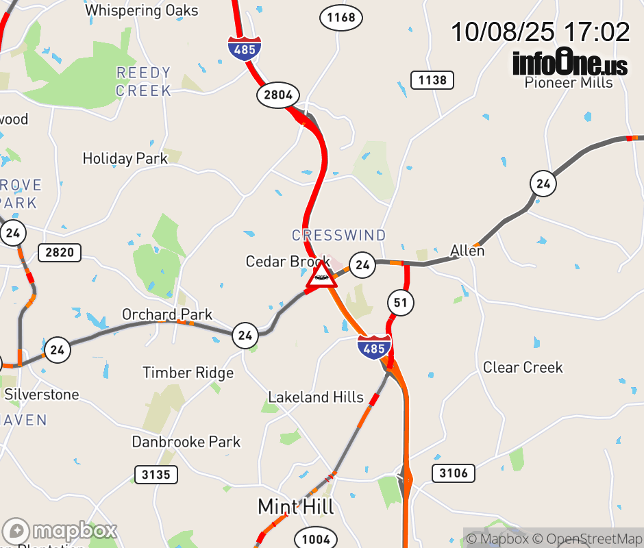 The left shoulder is at Exit 41 (Albermarle Road). Updated: Wed 10/8/25 5:02 PM EDT ![]() Updated: Wed 10/8/25 5:02 PM EDT |