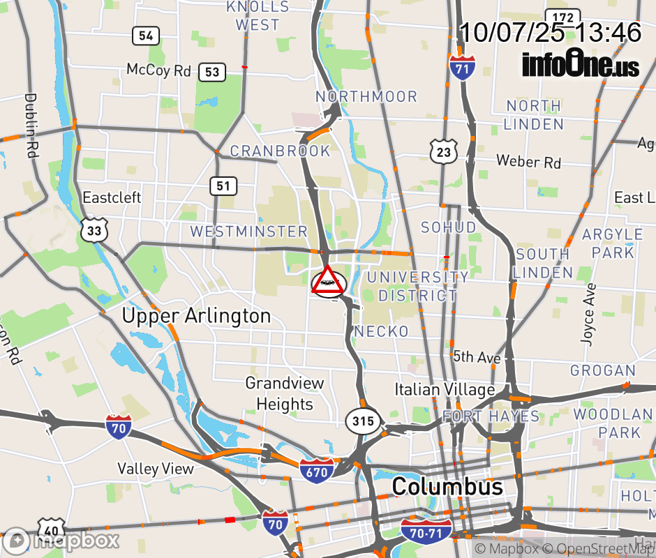 The 2 left lanes are blocked on SR-315 North at W Lane Ave, due to a crash. Updated: Tue 10/7/25 1:46 PM EDT ![]() Updated: Tue 10/7/25 1:46 PM EDT |