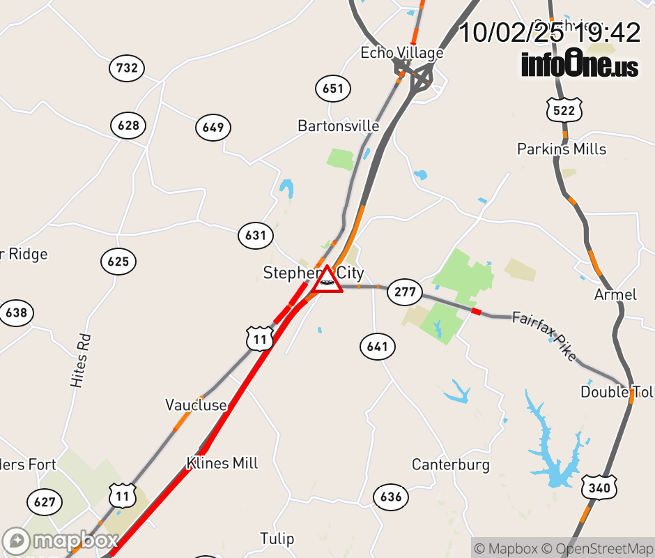 On I-81 North at mile marker 307.2 in the County of Frederick, motorists can expect delays due to a tractor trailer crash. Traffic backups are approximately 3.0 miles. Updated: Thu 10/2/25 7:42 PM EDT ![]() Updated: Thu 10/2/25 7:42 PM EDT |