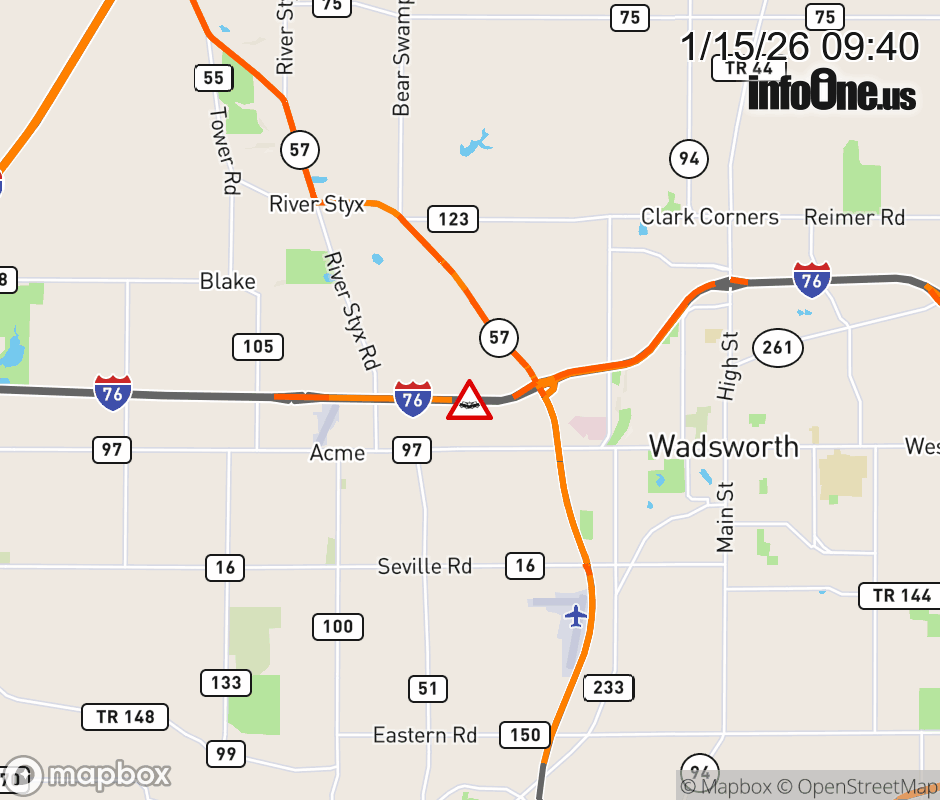 Expect lane closures on I-76/US-224 West beyond SR-57, due to a crash. ![]() |