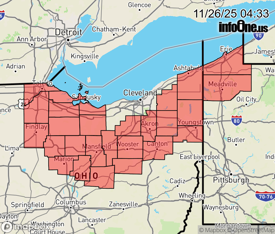 Wind Advisory issued November 26 at 4:32AM EST until November 27 at 4:00AM EST by NWS Cleveland OH * WHAT... Southwest winds 20 to 30 mph with gusts up to 50 mph expected. * WHERE... Portions of north central, northeast, and northwest Ohio and northwest Pennsylvania. * WHEN... From 10 AM this morning to 4 AM EST Thursday. * IMPACTS... Gusty winds will blow around unsecured objects. Tree limbs could be blown down and a few power outages may result. ![]() |