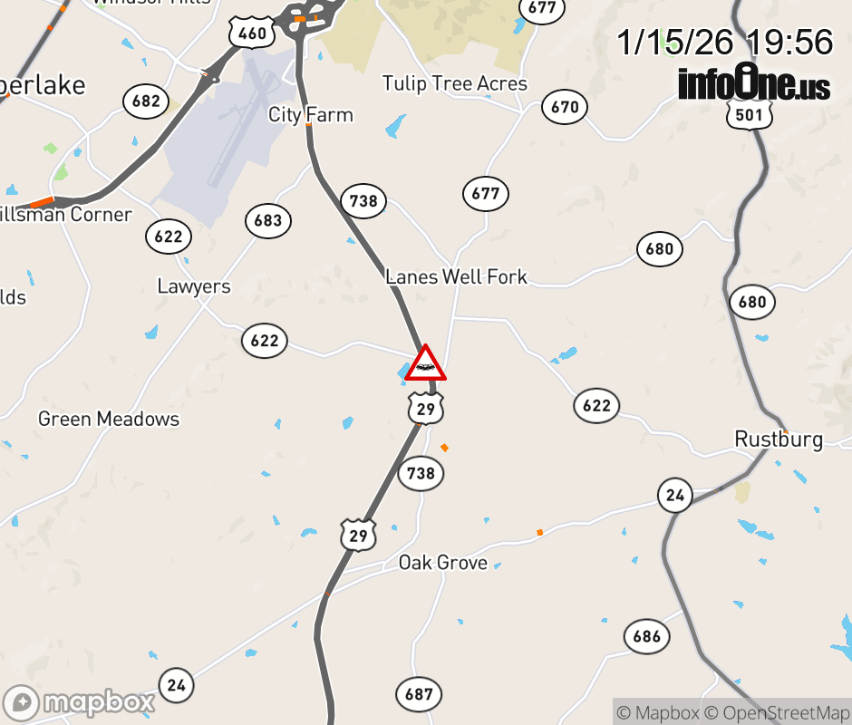 On Rt. 622 West in the County of Campbell, in the vicinity of Leland Rd; Wards Rd; US-29N; /LELAND RD, motorists can expect delays due to a vehicle crash. Lane closures exist. ![]() |