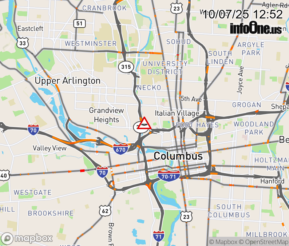 Expect lane closures on Ramp SR-315 South to I-670 East, due to a crash. ![]() |