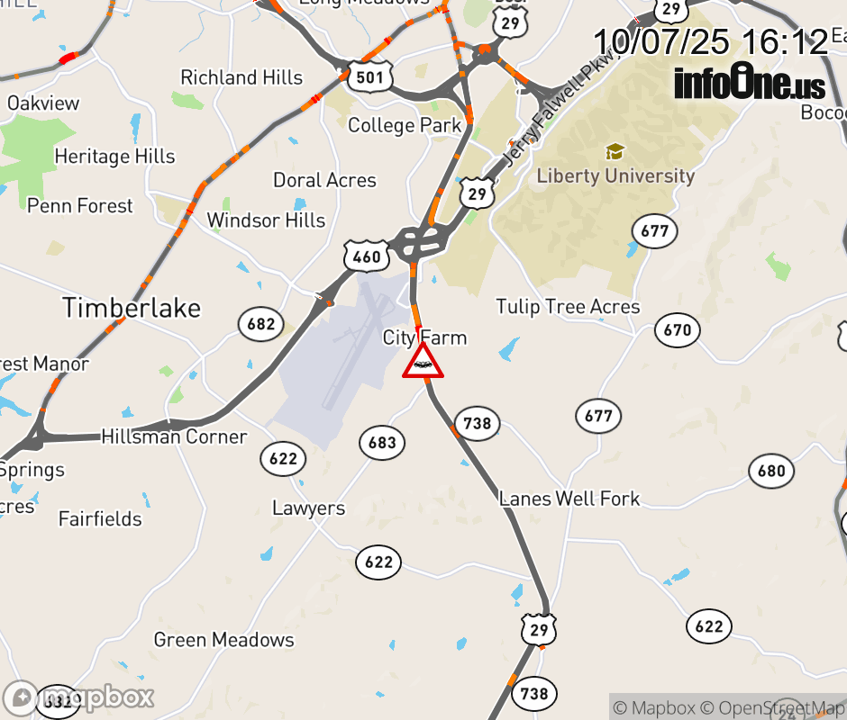 On US-29 in the County of Campbell, in the vicinity of Baker Rd, motorists can expect delays due to a vehicle crash. The south left shoulder and left lane are closed. Updated: Tue 10/7/25 4:12 PM EDT ![]() Updated: Tue 10/7/25 4:12 PM EDT |