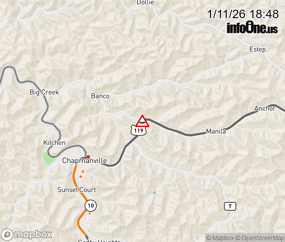 Vehicle Crash on US-119 NB near Trace Fork Road. The northbound right lane is closed. Updated: Sun 1/11/26 6:48 PM EST ![]() Updated: Sun 1/11/26 6:48 PM EST |