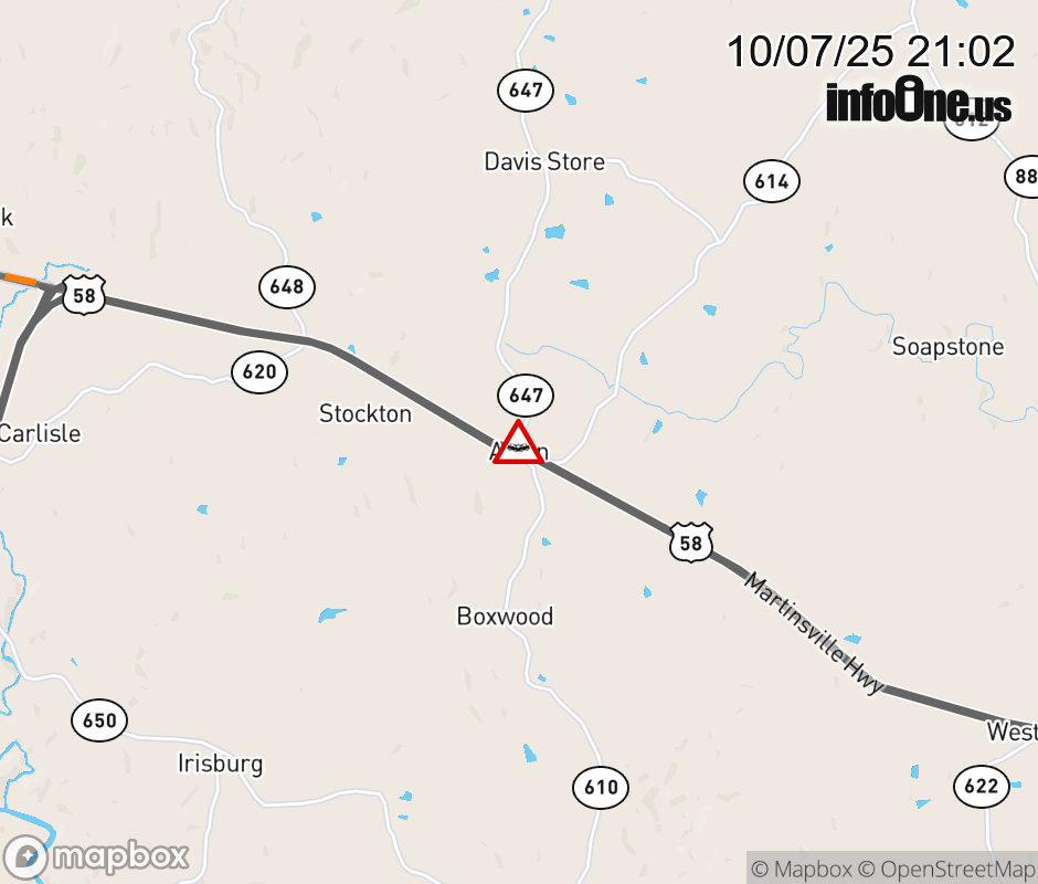 On Rt. 647 North in the County of Henry, in the vicinity of Dans Dr; Rt. 790E/W (Henry County), motorists can expect delays due to a vehicle crash. Lane closures exist. ![]() |