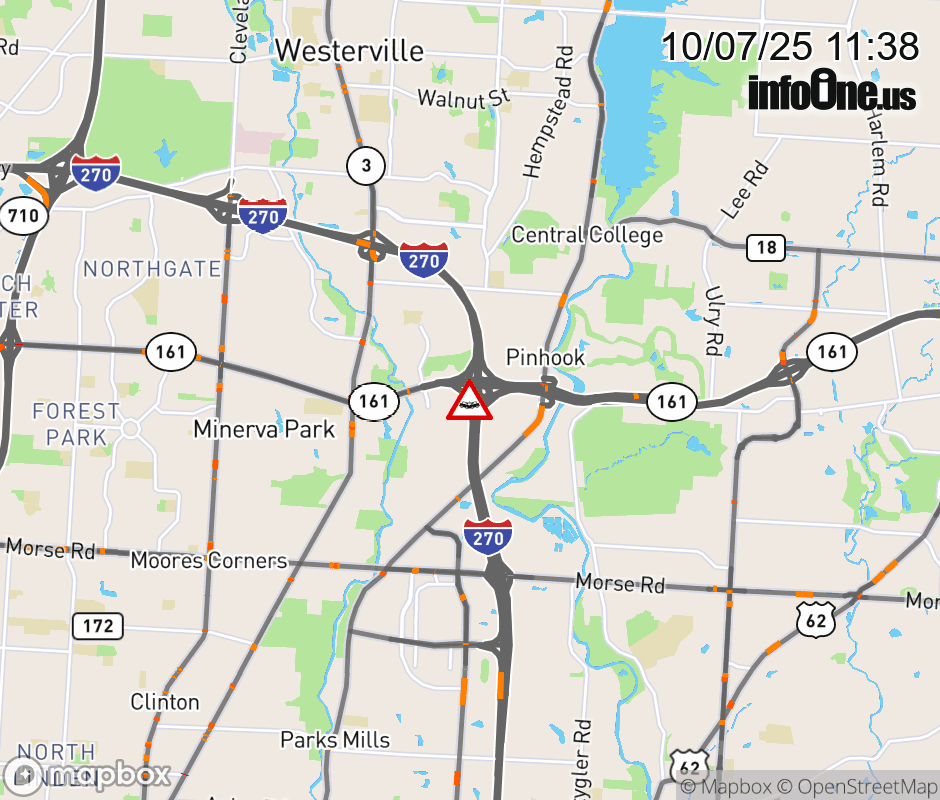 Expect lane closures on Ramp SR-161 West to I-270 South, due to a crash. ![]() |