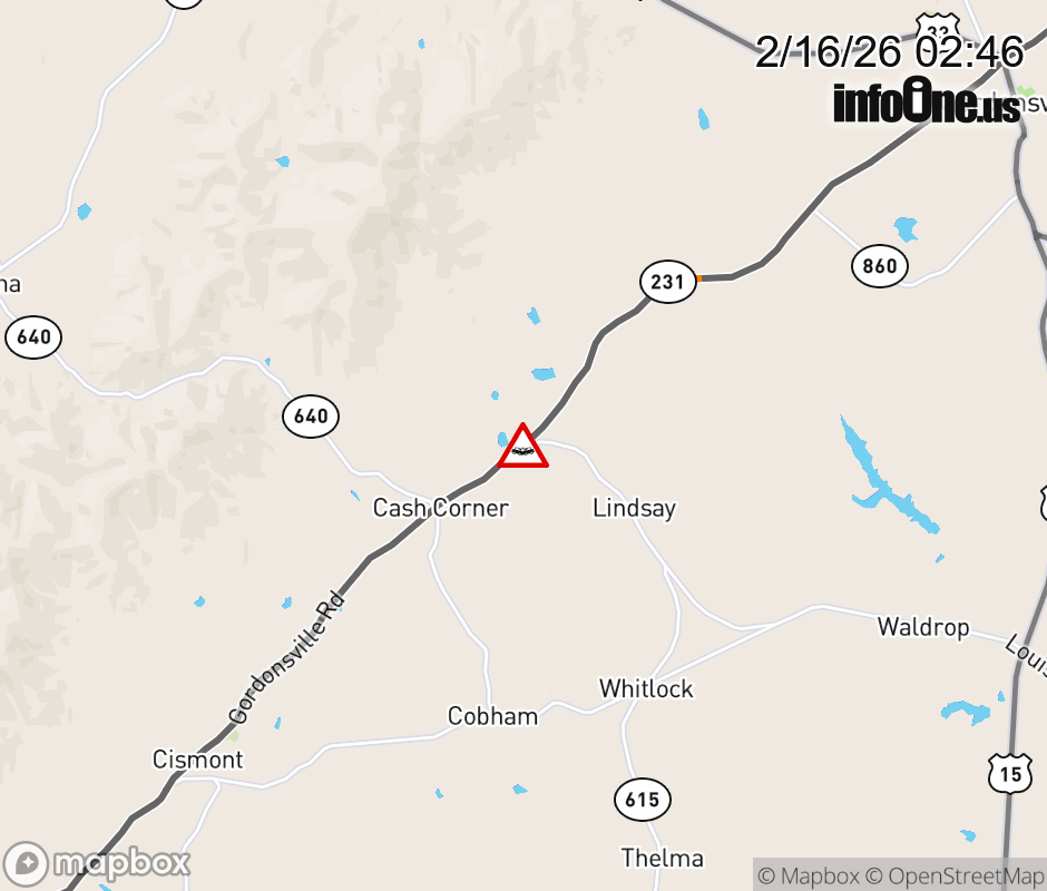 On VA-231 South in the County of Albemarle, in the vicinity of Lindsay Rd; Rt. 615N/S (Albemarle County), motorists can expect delays due to a vehicle crash. Updated: Mon 2/16/26 2:46 AM EST ![]() Updated: Mon 2/16/26 2:46 AM EST |