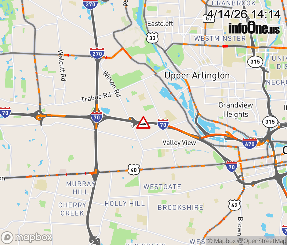 The center lane is blocked on I-70 West at Wilson Rd, due to a disabled vehicle. ![]() |