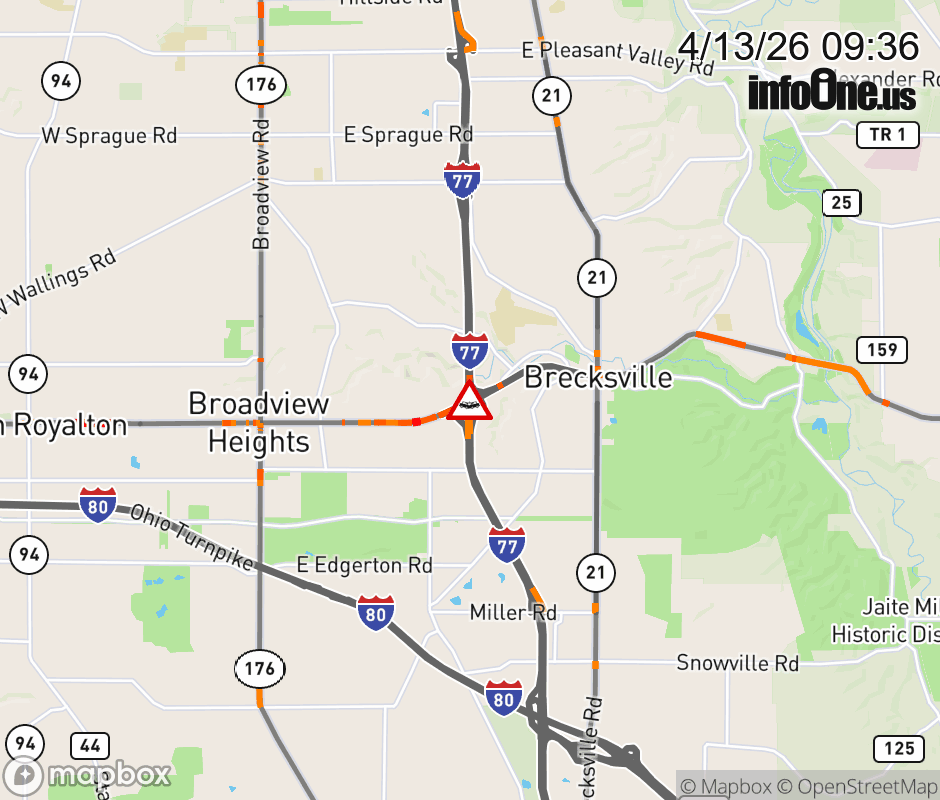 The left shoulder is blocked on I-77 North beyond SR-82, due to a crash. Updated: Mon 4/13/26 9:36 AM EDT ![]() Updated: Mon 4/13/26 9:36 AM EDT |