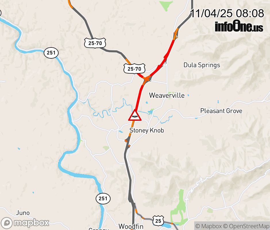 The right shoulder is closed past Exit 19, US 25 Updated: Tue 11/4/25 8:08 AM EST ![]() Updated: Tue 11/4/25 8:08 AM EST |