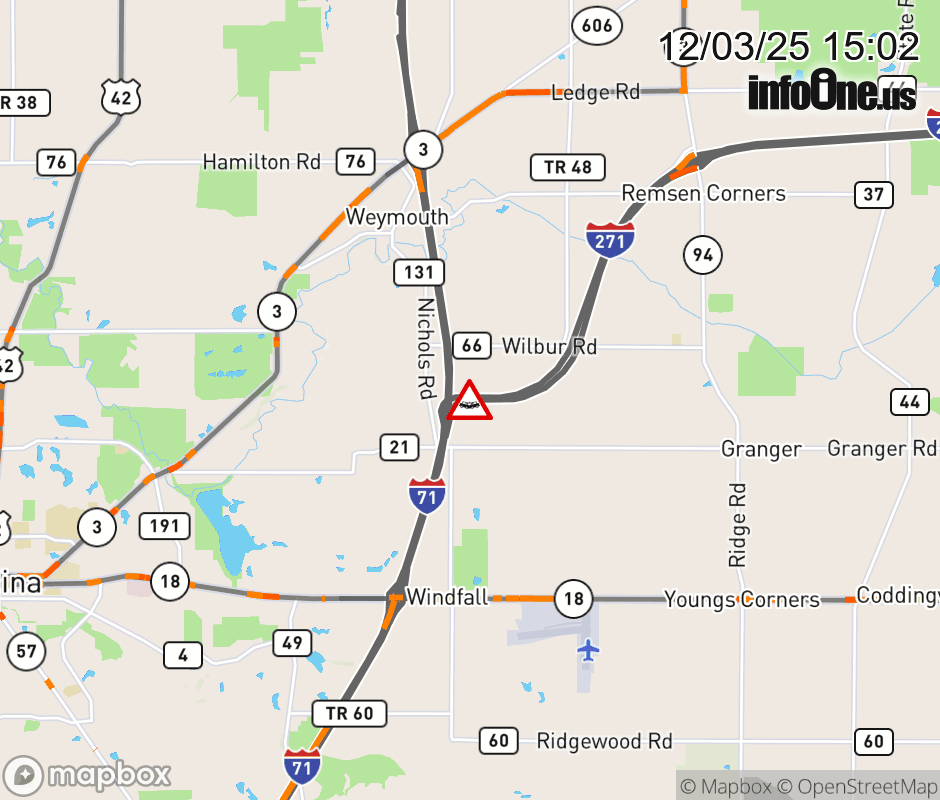 The left lane is closed on I-271 North at Ramp I-71 North to I-271 North, due to a crash. Updated: Wed 12/3/25 3:02 PM EST ![]() Updated: Wed 12/3/25 3:02 PM EST |