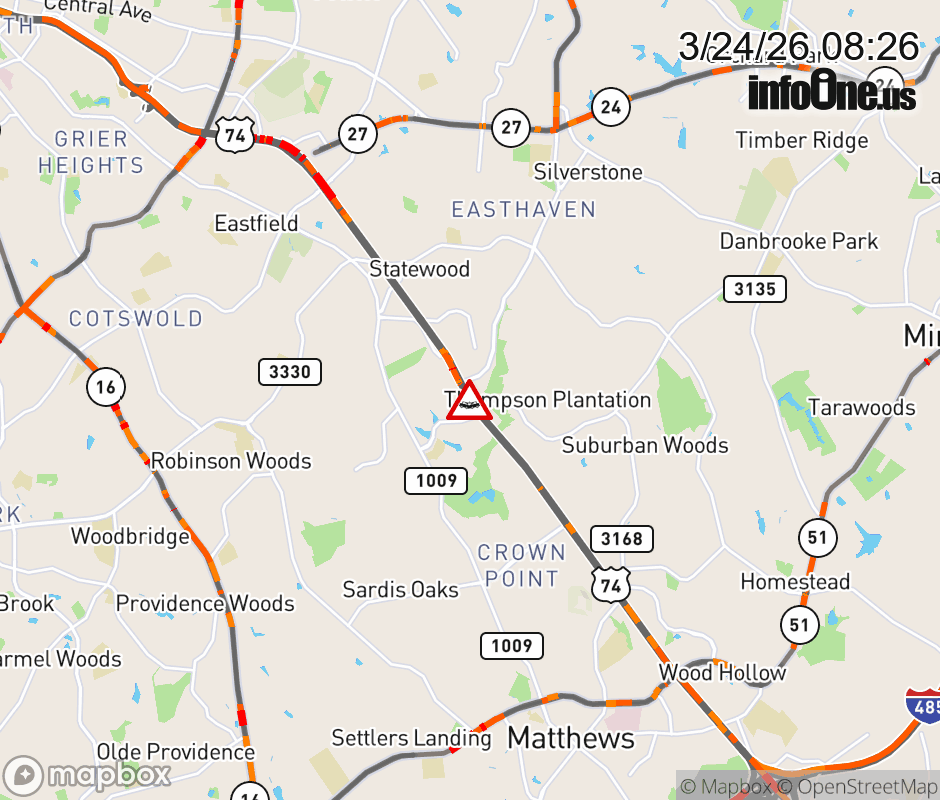 Canceled 3/24/26 8:40 AM Location: Independence Blvd (US-74W), NC Vehicle Crash.