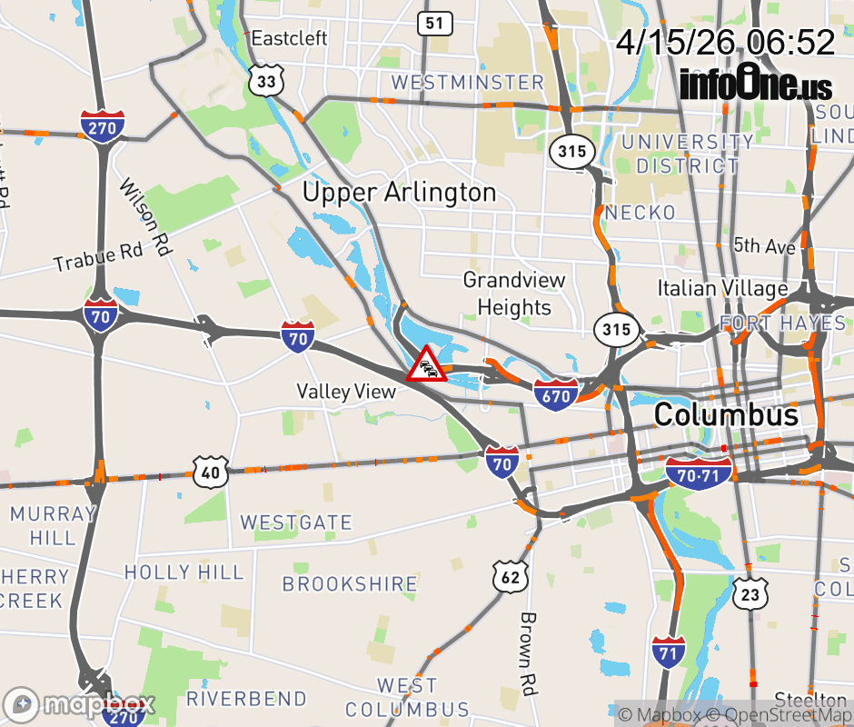 Location: Ramp from I-670 W to US-33 at MM 0.6, OH Traffic hazard.