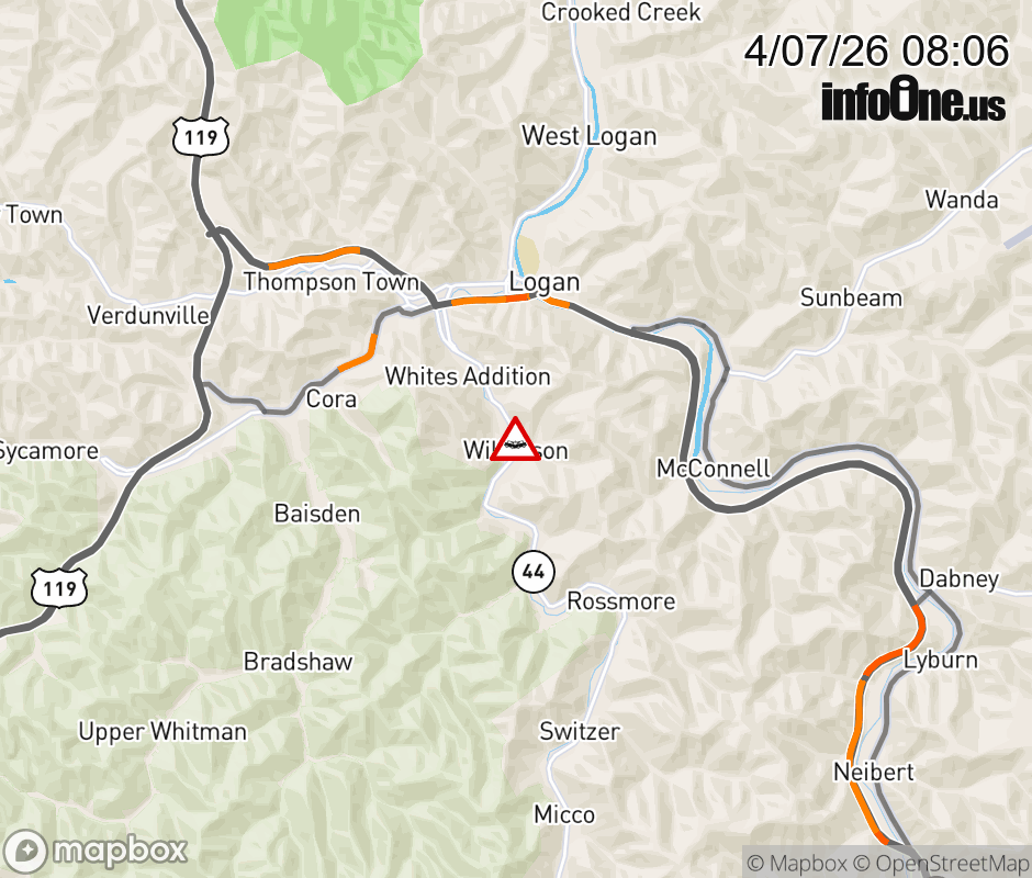 Vehicle Crash on WV-44 (1400 Block Jerry West Hgwy). The southbound road is closed. The northbound road is closed. ![]() |