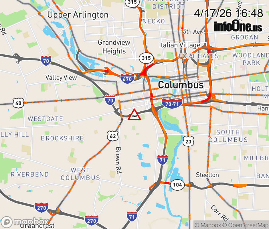 The right shoulder is blocked on I-70 East beyond US-40/ W Broad St, due to a crash. Updated: Fri 4/17/26 4:48 PM EDT ![]() Updated: Fri 4/17/26 4:48 PM EDT |