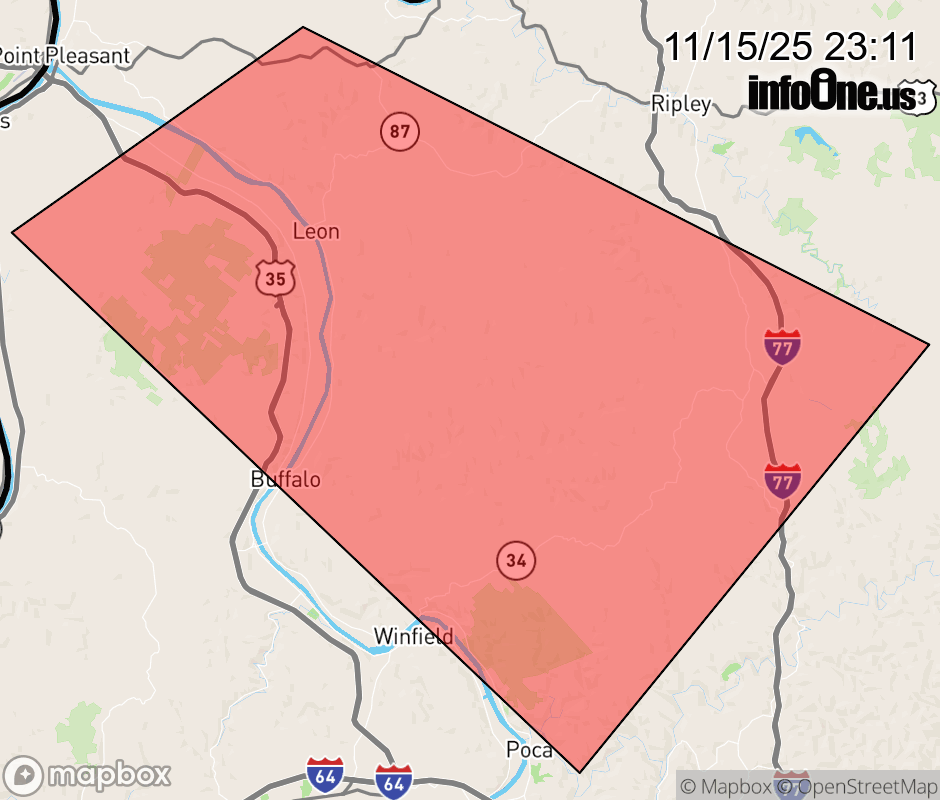 Canceled 11/15/25 11:30 PM Special Weather Statement issued November 15 at 11:05PM EST by NWS Charleston WV At 1105 PM EST, Doppler radar was tracking a strong thunderstorm 7 miles southeast of Point Pleasant, moving southeast at 40 mph. HAZARD...Wind gusts up to 50 mph. SOURCE...Radar indicated. IMPACT...Gusty winds could knock down tree limbs and blow around unsecured objects. Locations impacted include... Winfield, Buffalo, Poca, Kenna, Bancroft, Leon, Grimms Landing, Given, Southside, Kentuck, and Liberty. This includes Interstate 77 in West Virginia between mile markers 120 and 131. ![]() |