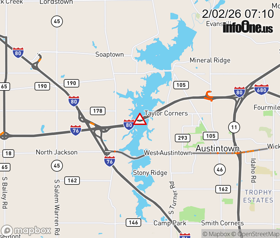Expect lane closures on I-80 West beyond SR-11 South/Canfield, due to a crash. ![]() |