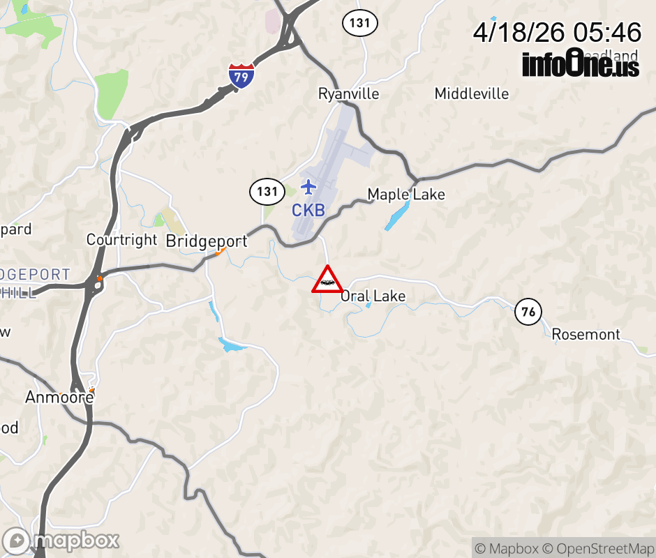 Vehicle Crash on WV-76 (W Veterans Memorial Highway) & CR-17 (Oral Lake Road). The westbound road is closed. The eastbound road is closed. Updated: Sat 4/18/26 5:46 AM EDT ![]() Updated: Sat 4/18/26 5:46 AM EDT |