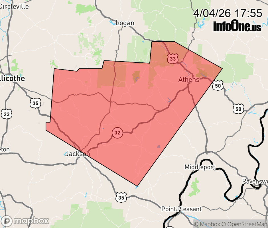 Canceled 4/4/26 6:30 PM Special Weather Statement issued April 4 at 5:54PM EDT by NWS Charleston WV At 553 PM EDT, Doppler radar was tracking gusty showers along a line extending from 11 miles northwest of Jackson to 10 miles southeast of Wellston. Movement was north at 25 mph. HAZARD...Wind gusts up to 50 mph. SOURCE...Radar indicated. IMPACT...Gusty winds could knock down tree limbs and blow around unsecured objects. Locations impacted include... Athens, Wellston, Nelsonville, Mcarthur, Albany, Lake Hope State Park, Chauncey, Hamden, Buchtel, Coalton, Zaleski, Vinton, Wilkesville, Radcliffe, Stroud Run State Park, Dyesville, Salem Center, Dexter, The Plains, and Creola. ![]() |