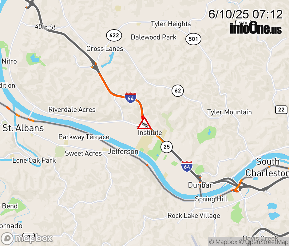 In Kanawha County there is a Congestion-Delay on I-64E at Mile Marker 50. Updated: Tue 6/10/25 7:12 AM EDT ![]() Updated: Tue 6/10/25 7:12 AM EDT |