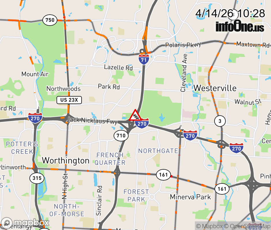 Expect lane closures on Ramp I-71 South to I-270 West, due to debris on roadway. ![]() |