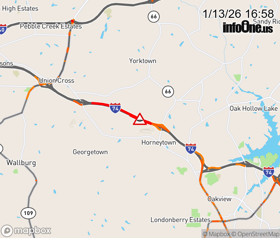 The left lane is closed past Exit 63 (NC 66). ![]() |