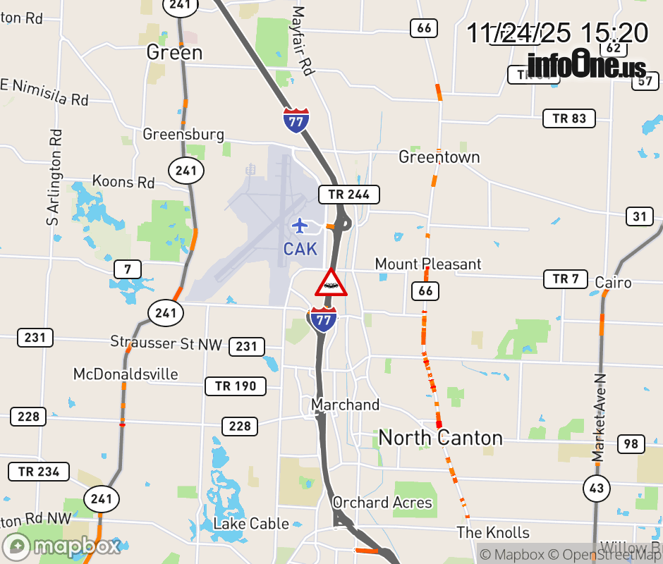 The right lane is blocked on I-77 North beyond Shuffel St, due to a crash. Updated: Mon 11/24/25 3:20 PM EST ![]() Updated: Mon 11/24/25 3:20 PM EST |