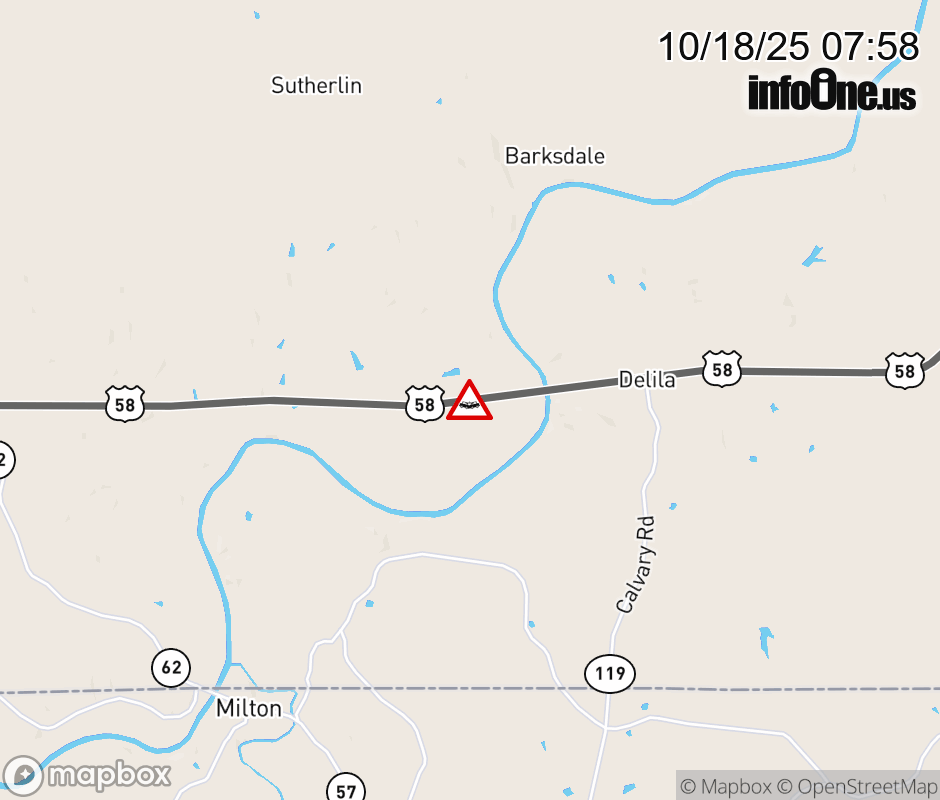 On US-58 in the County of Halifax, in the vicinity of Hackberry Rd; Hackman Trl; Rt. 656N/S (Halifax County), motorists can expect delays due to a vehicle crash. The west right lane and right shoulder are closed. ![]() |