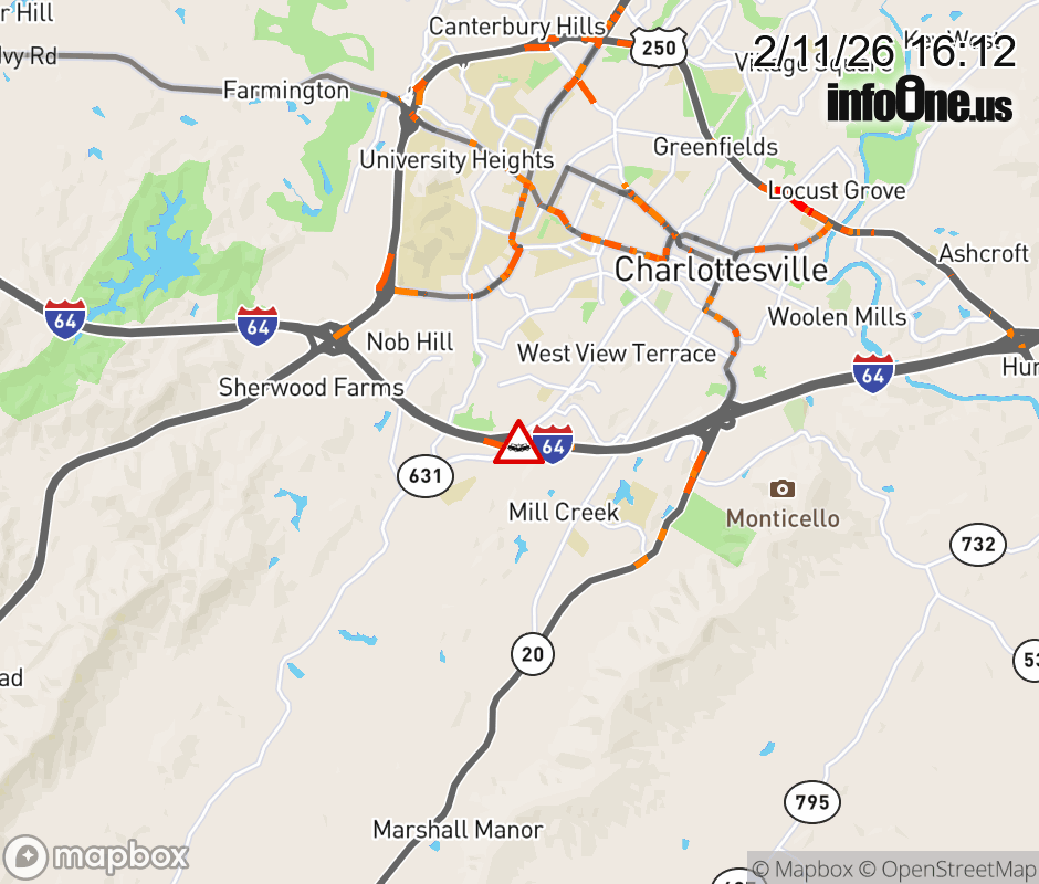 On I-64 at mile marker 120 in the County of Albemarle, motorists can expect delays due to a vehicle crash. The west right shoulder is closed. ![]() |