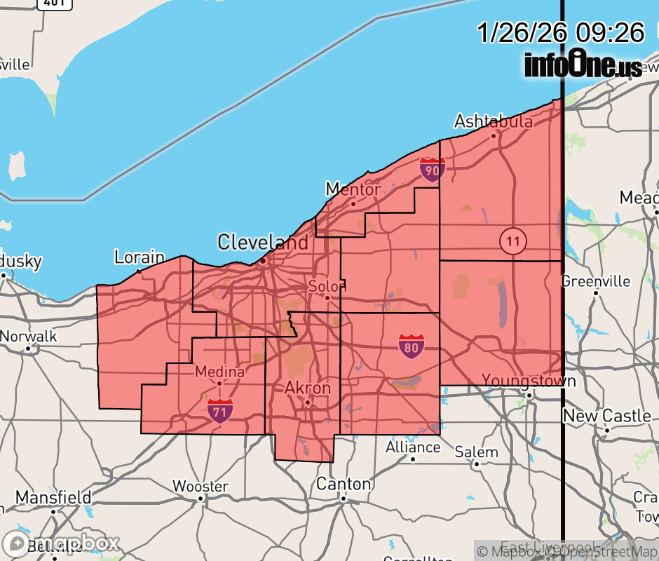 Canceled 1/26/26 3:56 PM Winter Weather Advisory issued January 26 at 9:25AM EST until January 26 at 4:00PM EST by NWS Cleveland OH * WHAT... Lake effect snow. Additional snow accumulations of 1 to 4 inches. * WHERE... Portions of north central and northeast Ohio. * WHEN... Until 4 PM EST this afternoon. * IMPACTS... Plan on slower travel due to periods of reduced visibility and snow covered roads. ![]() |