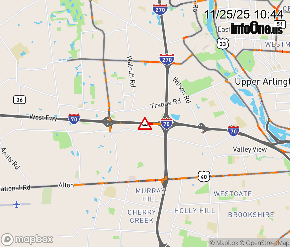 The right shoulder is blocked on I-70 East beyond Hilliard - Rome Rd, due to a crash. Updated: Tue 11/25/25 10:44 AM EST ![]() Updated: Tue 11/25/25 10:44 AM EST |