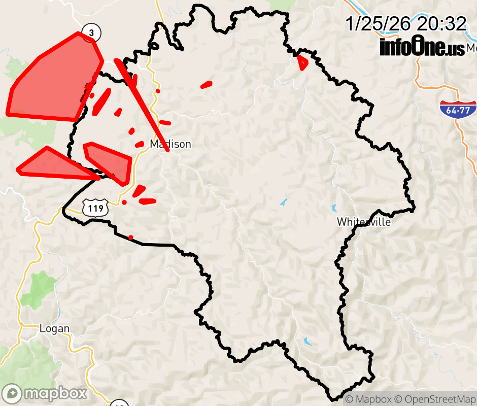 Boone County has 18 power outages affecting 354 customers. Appalachian Power 354 without power Danville: Customers affected: 223 (10%) Estimated repair: Mon 9:00 PM Bloomingrose: Customers affected: 44 (19%) Estimated repair: Mon 9:00 PM Ridgeview: Customers affected: 22 (11%) Estimated repair: Mon 9:00 PM Turtle Creek: Customers affected: 9 (17%) Estimated repair: Mon 9:00 PM Julian: Customers affected: 8 (2%) Estimated repair: Mon 9:00 PM An additional 2 communities have outages affecting 8 customers. Updated: Sun 1/25/26 8:31 PM EST ![]() Updated: Sun 1/25/26 8:32 PM EST |