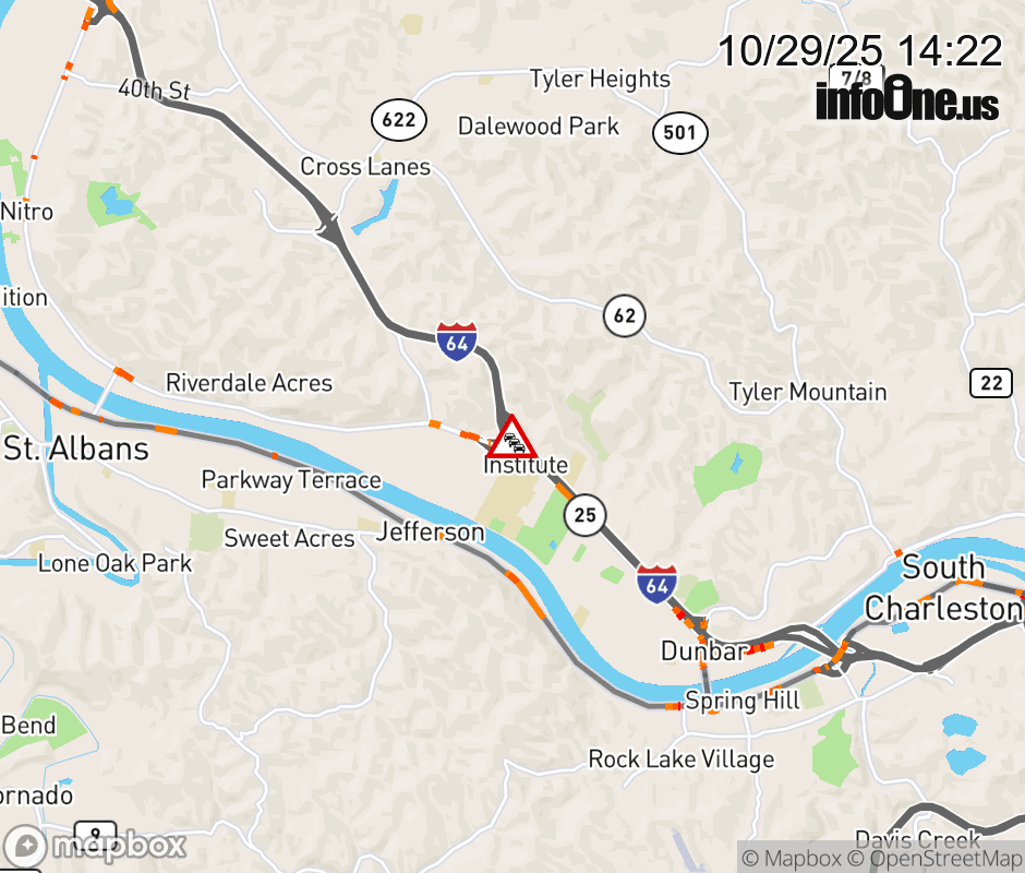 Vehicle Fire on I-64W at Mile Marker 50.0. The westbound 2 right lanes are closed. Updated: Wed 10/29/25 2:22 PM EDT  Updated: Wed 10/29/25 2:22 PM EDT | |||||||||
